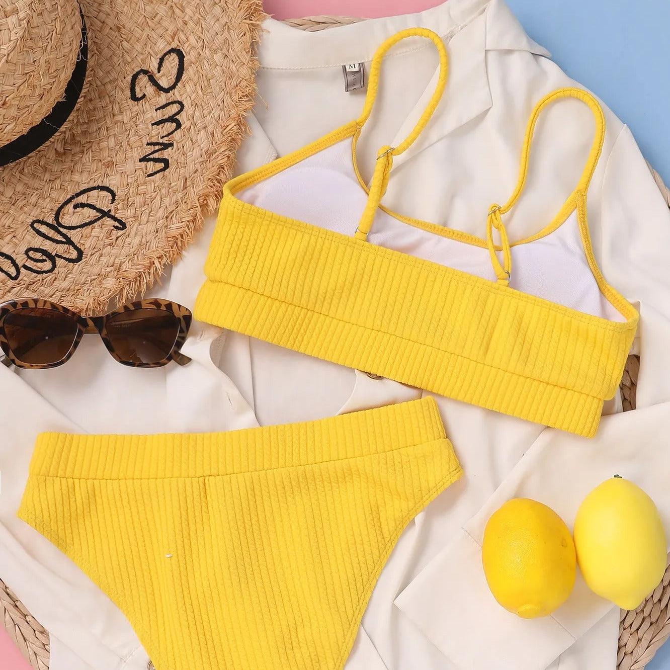 Orla zachwyca wysokim stanem, cienkimi regulowanymi ramiączkami i elastycznym, prążkowanym materiałem, który pięknie dopasowuje się do sylwetki. Brak zapięć sprawia, że strój zakłada się łatwo i wygodnie – to model, który staje się drugą skórą podczas każdego letniego dnia.
