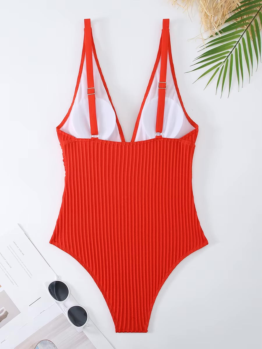 Model Flora to połączenie minimalizmu z wyrazistym krojem. Dzięki wyciętemu dekoltowi, dopasowanej talii i regulowanym ramiączkom, strój subtelnie podkreśla kobiecą sylwetkę i zapewnia pełen komfort podczas noszenia.