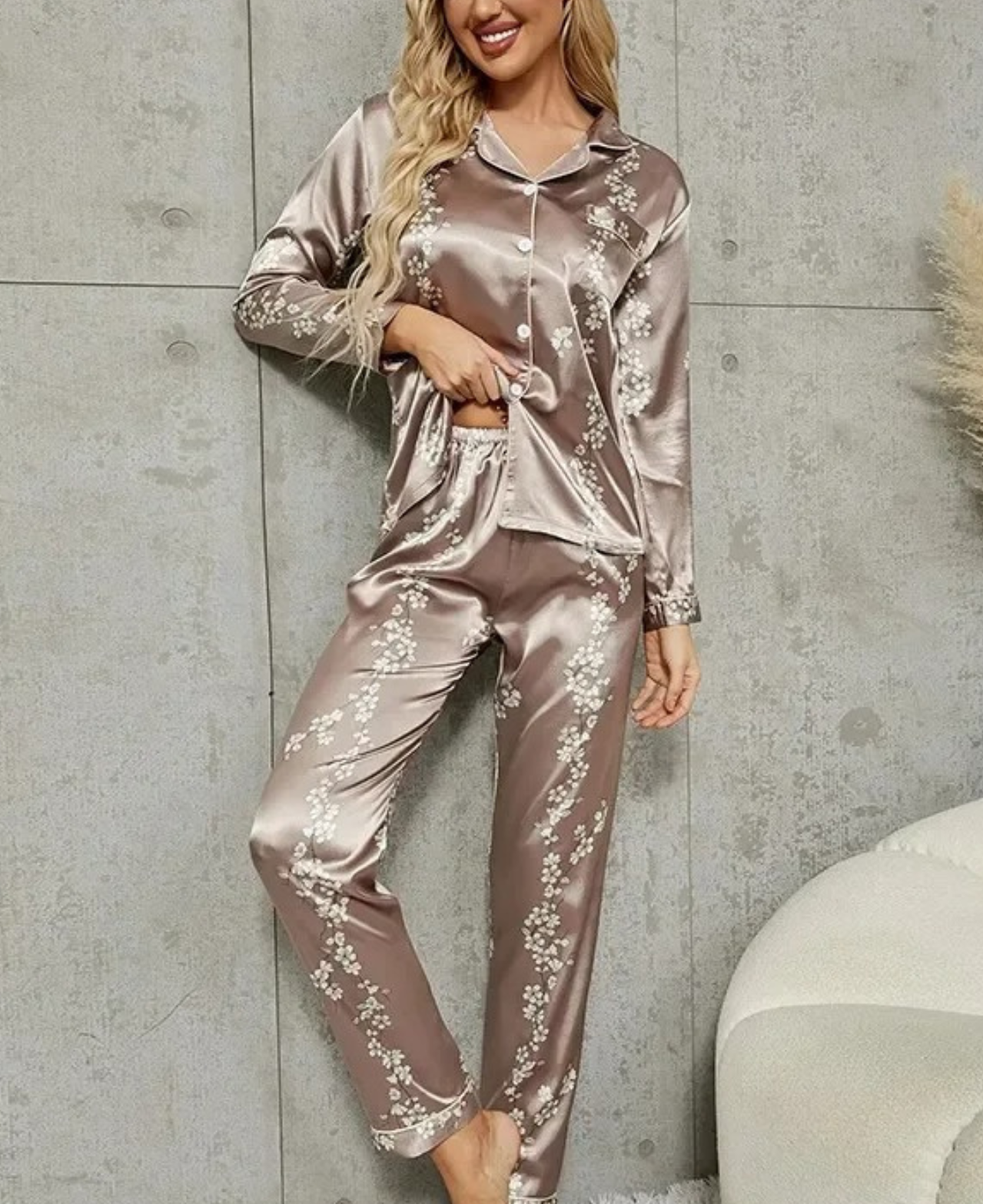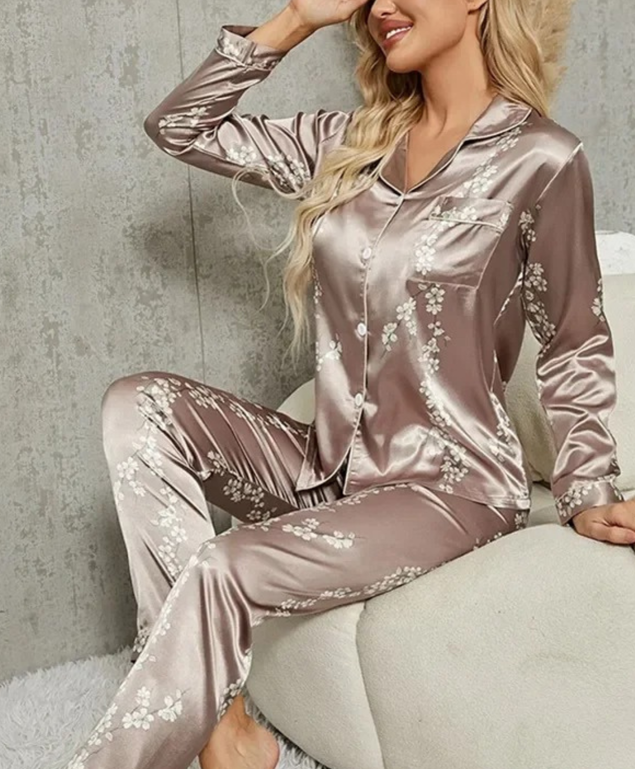 Odkryj połączenie elegancji i komfortu z naszą piżamą damską, ozdobioną subtelnym kwiatowym wzorem.