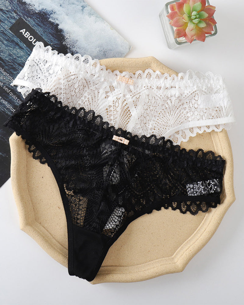 2 Sets Transparent Hollow Cross Lace Lace Thong